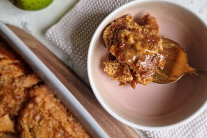 You’re in for a treat with this seasonal dessert recipe. Juicy pears smothered in a cinnamon and ginger infused, gluten-free light sponge…and let’s not forget …