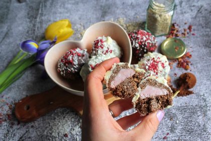 Raw brownie balls filled with a strawberry cheesecake mixture, smothered in more chocolate, sprinkled with freeze-dried raspberries and coconut – what’s not to like about …
