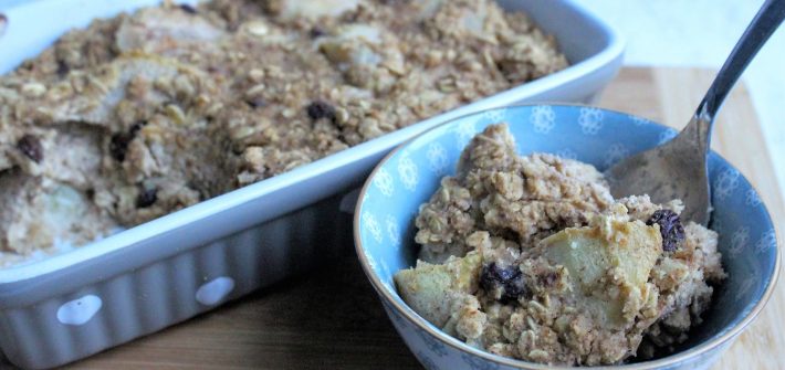 A breakfast that tastes like dessert – yes please! Especially when it’s on the vibe of apple crumble and custard – using oats, cinnamon, apples …