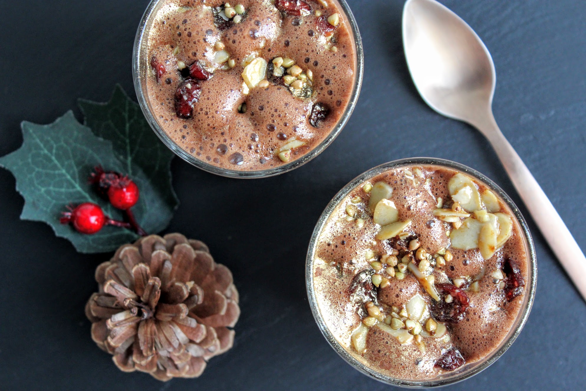 Vegan Chocolate Mousse with Cranberry & Almond Crunch