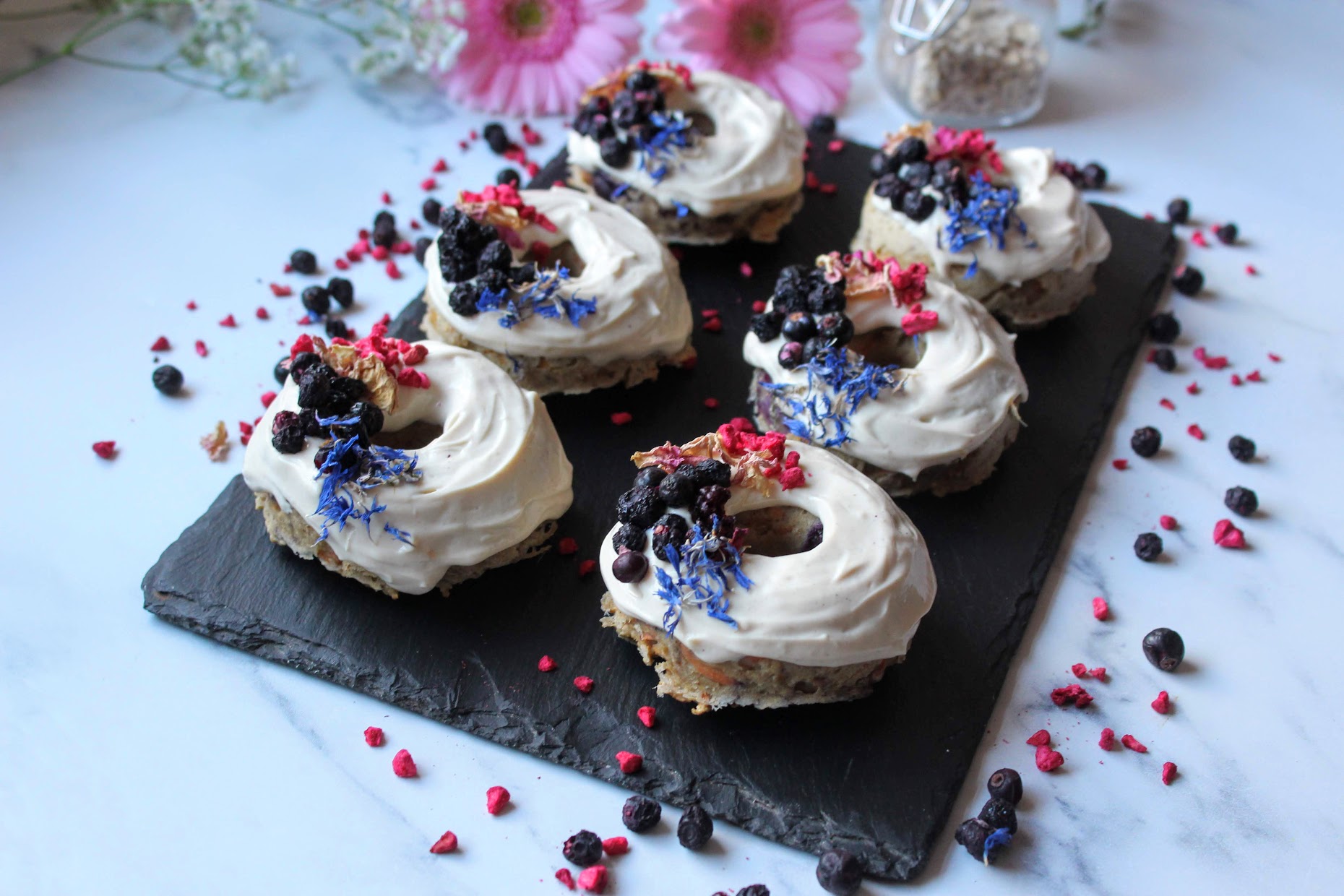 These gorgeously decorated donuts are actually made from a carrot cake mixture studded with colourful, juicy blueberries for a delicious twist. Topped with a vanilla …