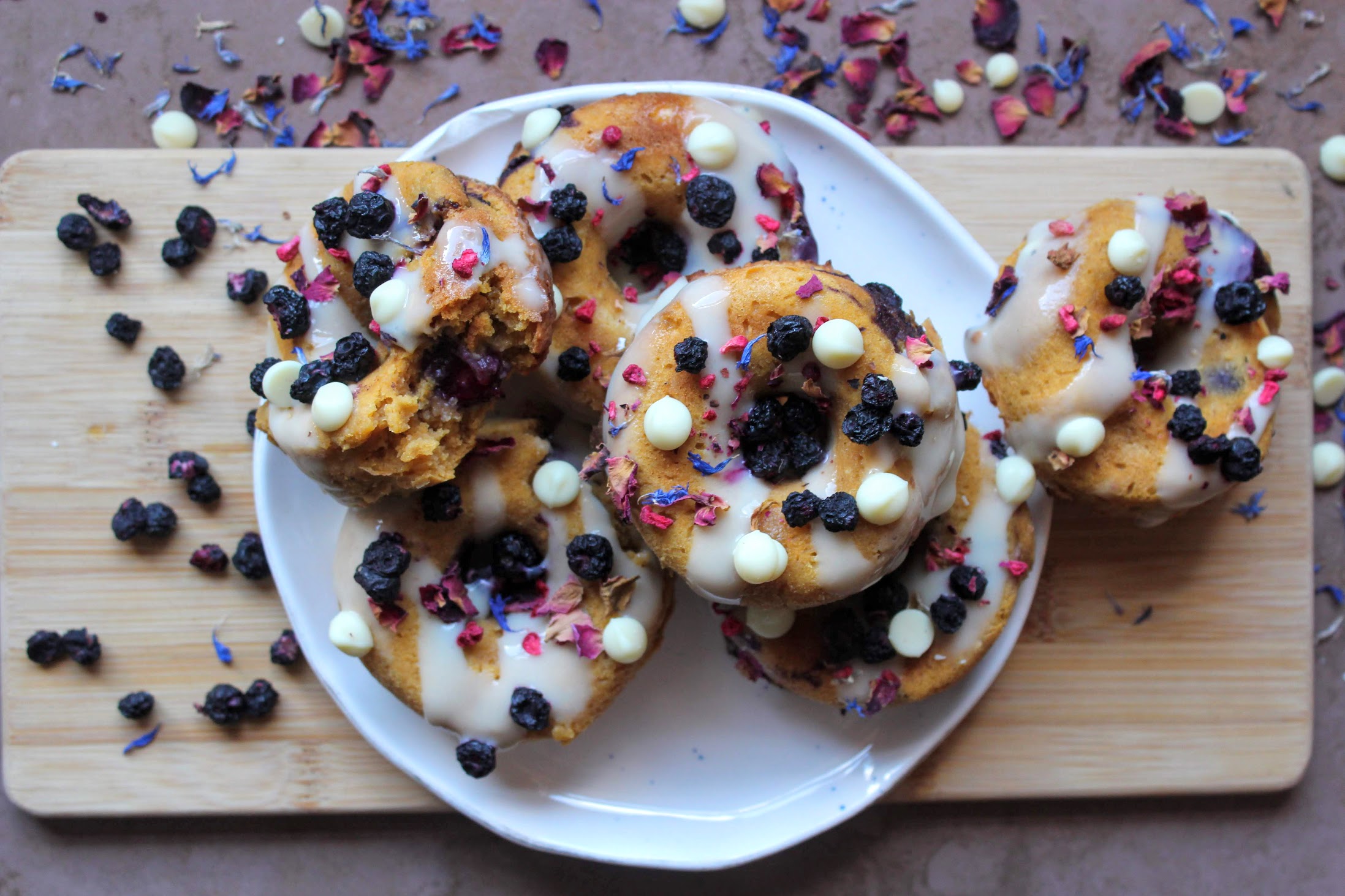 Sweet Potato, Blueberry & White Chocolate Donuts