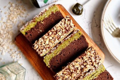 There’s something so special about this recipe, which combines a deliciously soft sweet potato brownie base, a coconut matcha layer plus dark chocolate on top …